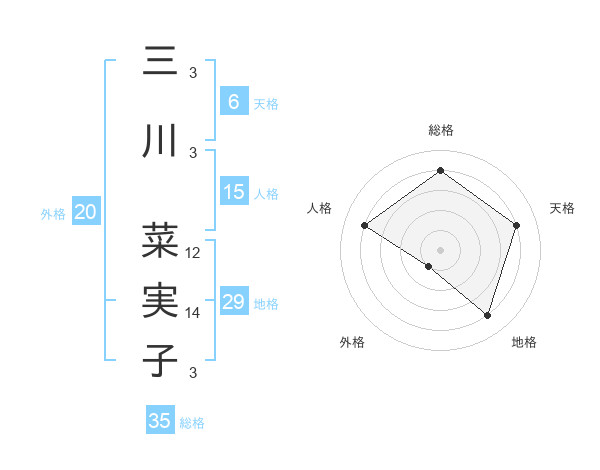 三川 菜実子さんの総格は35画の4点!