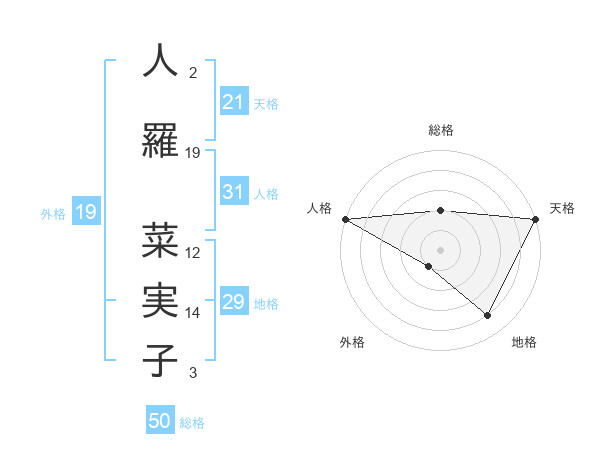 人羅 菜実子さんを姓名の画数から五運を鑑定