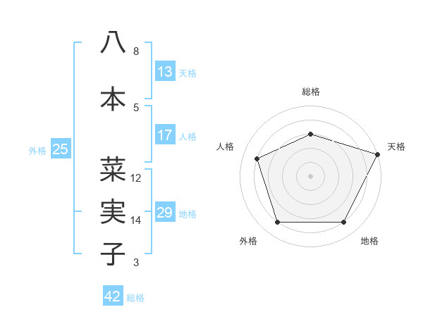 八本 菜実子さんを姓名の画数から五運を鑑定