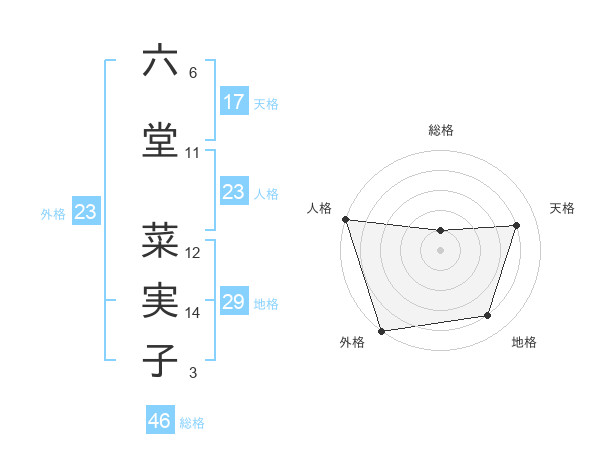 六堂 菜実子さんの外格は23画の5点!