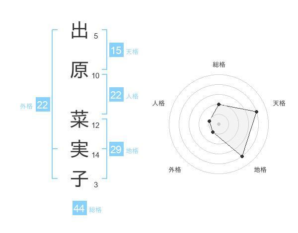 出原 菜実子さんの総格は44画の2点!