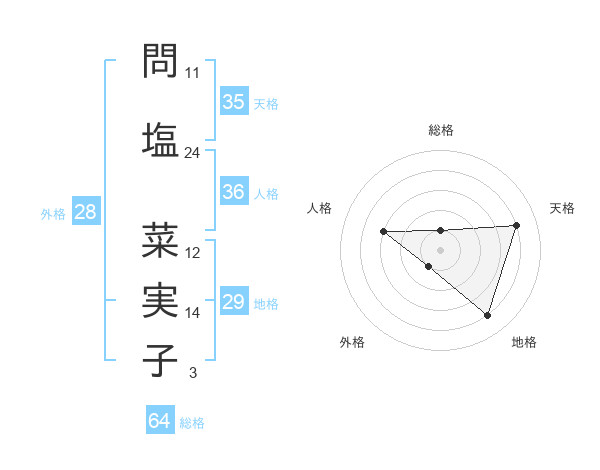 問塩 菜実子さんを姓名の画数から五運を鑑定
