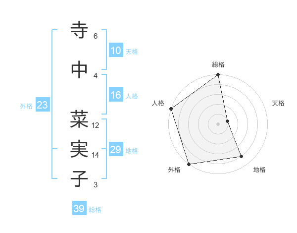 寺中 菜実子さんの総格は39画の5点!