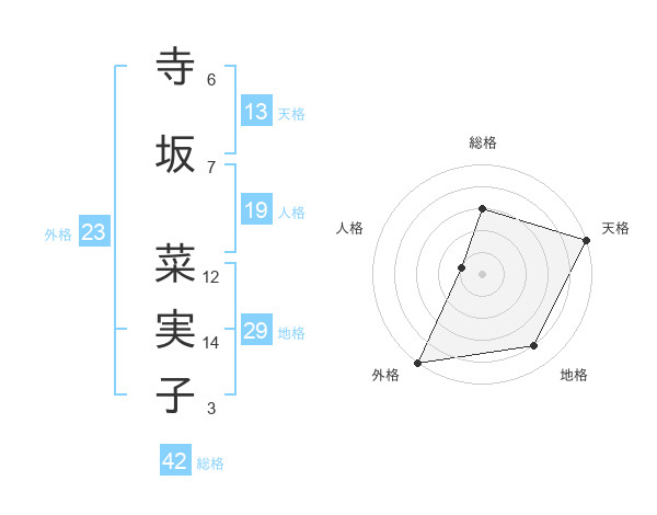 寺坂 菜実子さんの天格は13画の5点!