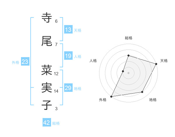 寺尾 菜実子さんの天格は13画の5点!