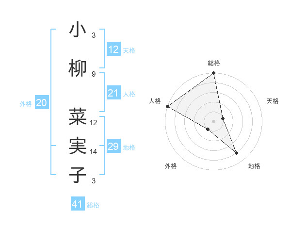 小柳 菜実子さんを姓名の画数から五運を鑑定