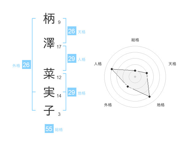 柄澤 菜実子さんの総格は55画の1点!