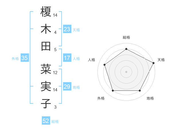 榎木田 菜実子さんを姓名の画数から五運を鑑定