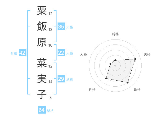 粟飯原 菜実子さんを姓名の画数から五運を鑑定