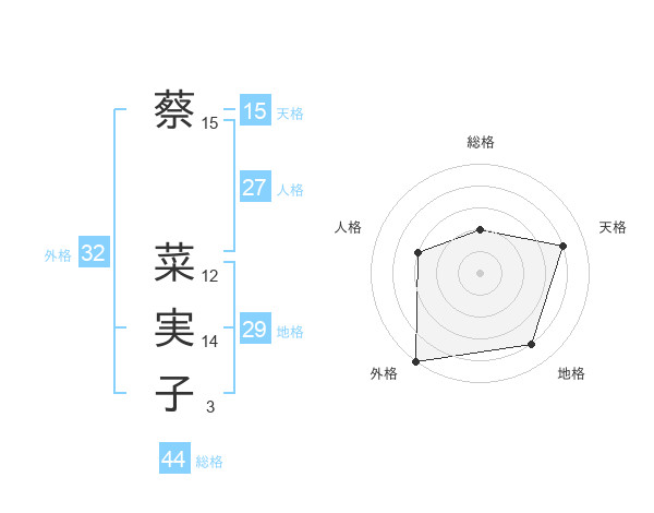 蔡 菜実子さんの総格は44画の2点!