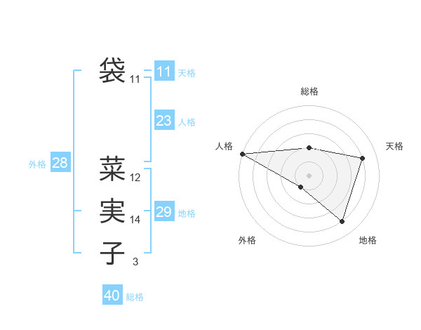 袋 菜実子さんを姓名の画数から五運を鑑定
