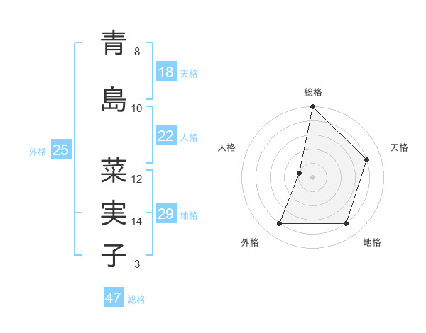 青島 菜実子さんを姓名の画数から五運を鑑定