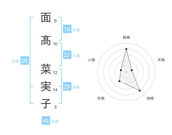 面髙 菜実子さんを姓名の画数から五運を鑑定