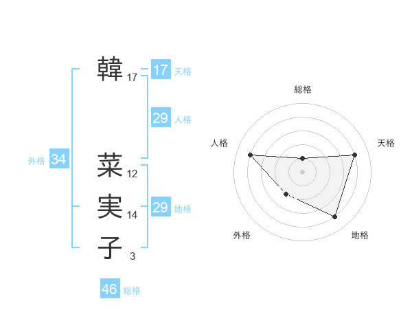 韓 菜実子さんを姓名の画数から五運を鑑定