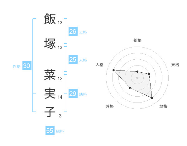 飯塚 菜実子さんの天格は26画の2点!