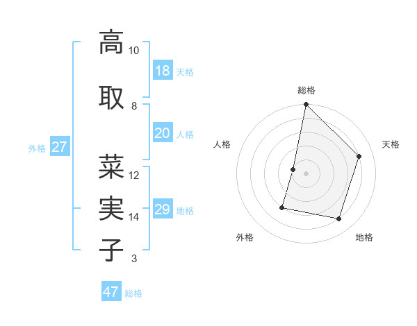 高取 菜実子さんの総格は47画の5点!