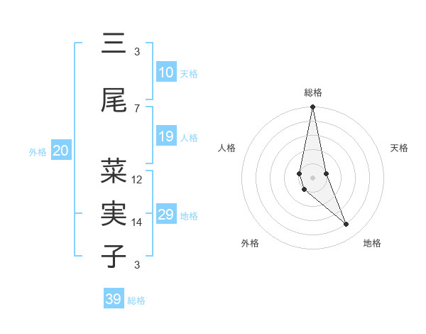 三尾 菜実子さんを姓名の画数から五運を鑑定