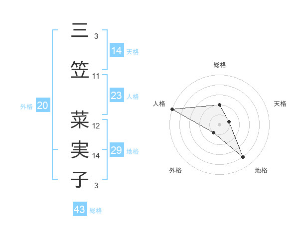 三笠 菜実子さんを姓名の画数から五運を鑑定