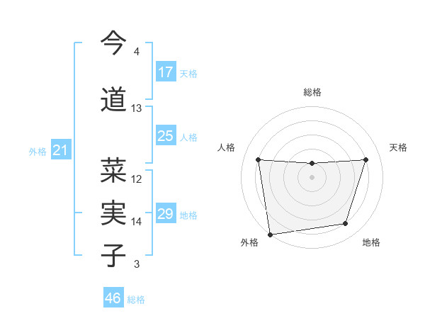 今道 菜実子さんの天格は17画の4点!