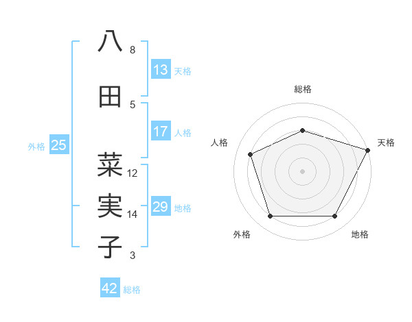 八田 菜実子さんを姓名の画数から五運を鑑定