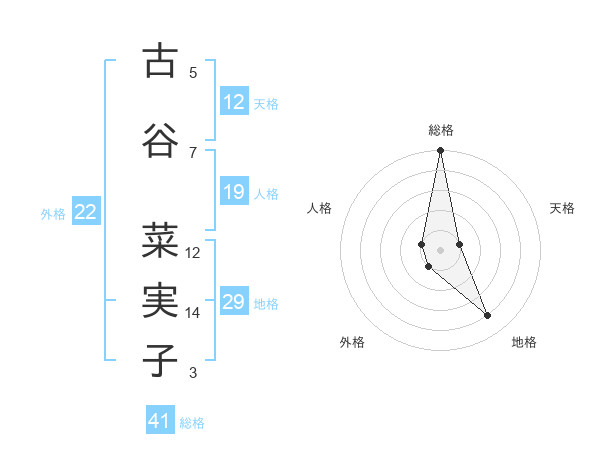 古谷 菜実子さんを姓名の画数から五運を鑑定
