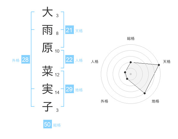 大雨原 菜実子さんを姓名の画数から五運を鑑定
