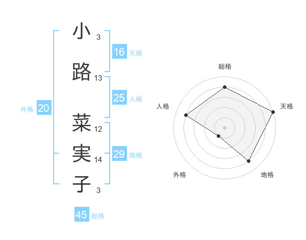 小路 菜実子さんを姓名の画数から五運を鑑定
