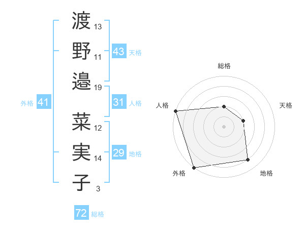 渡野邉 菜実子さんを姓名の画数から五運を鑑定