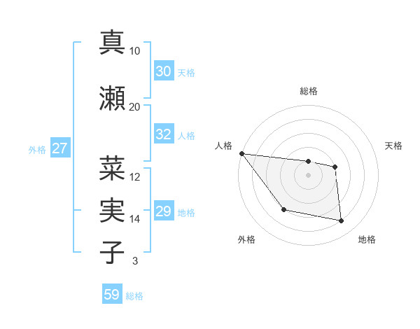 真瀬 菜実子さんの天格は30画の2点!