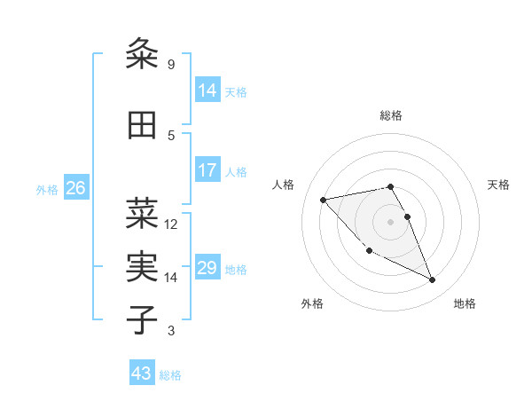 粂田 菜実子さんの総格は43画の2点!