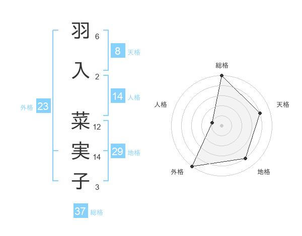 羽入 菜実子さんを姓名の画数から五運を鑑定