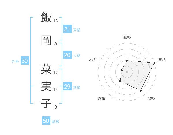飯岡 菜実子さんの天格は21画の5点!