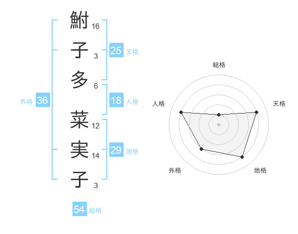 鮒子多 菜実子さんを姓名の画数から五運を鑑定