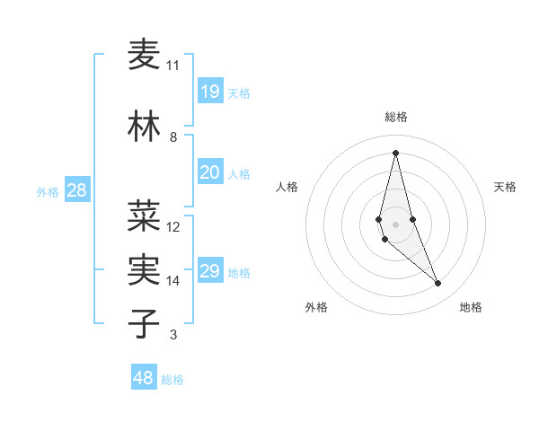 麦林 菜実子さんを姓名の画数から五運を鑑定