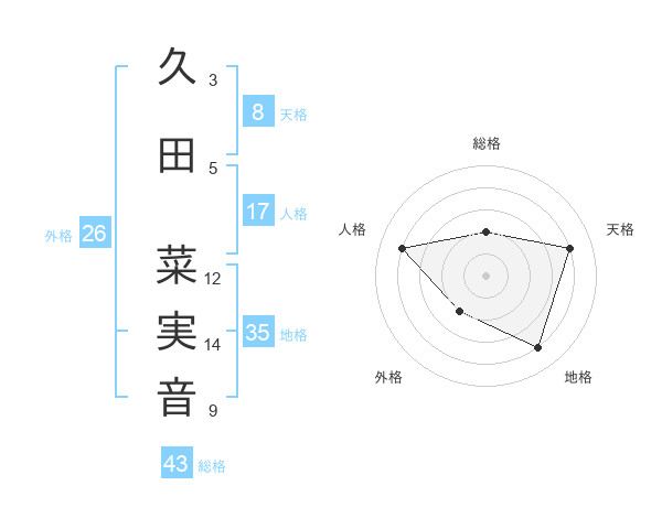 久田 菜実音さんを姓名の画数から五運を鑑定