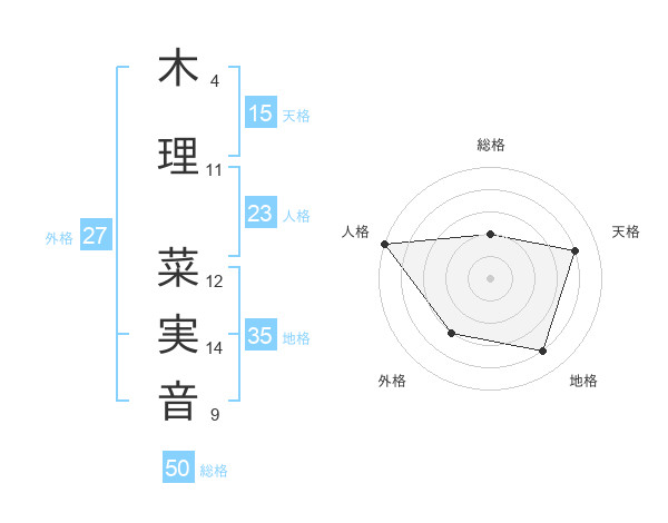 木理 菜実音さんを姓名の画数から五運を鑑定