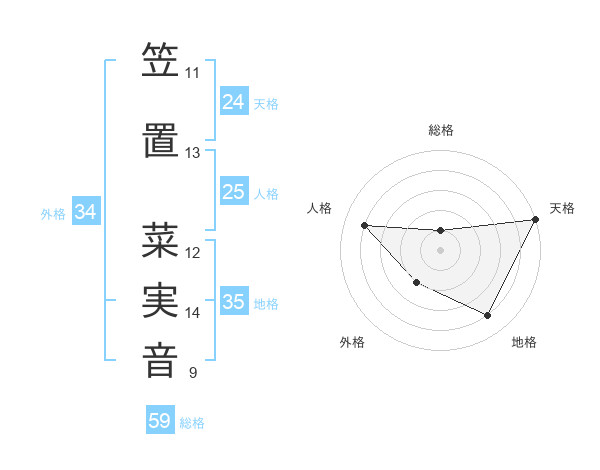 笠置 菜実音さんを姓名の画数から五運を鑑定