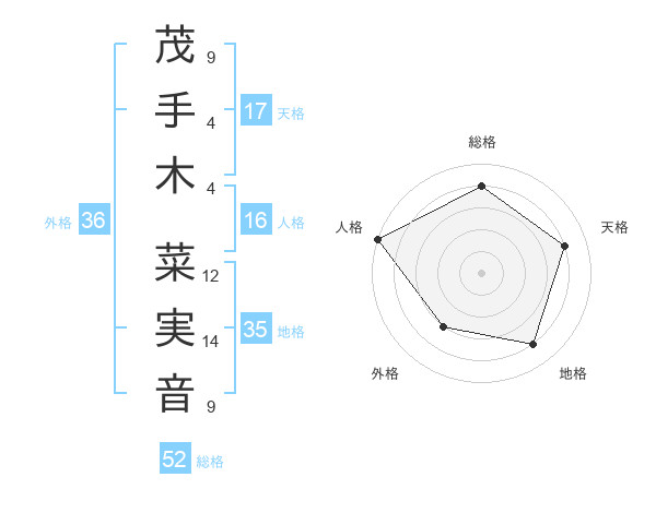 茂手木 菜実音さんを姓名の画数から五運を鑑定
