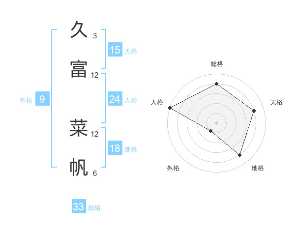久富 菜帆さんの総格は33画の4点!