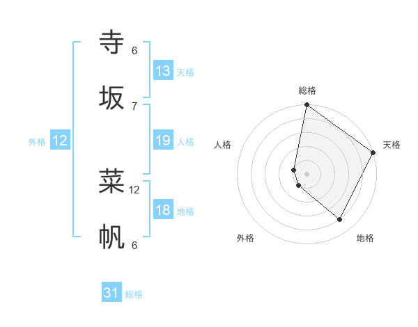 寺坂 菜帆さんの天格は13画の5点!