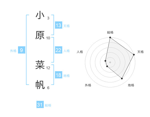 小原 菜帆さんを姓名の画数から五運を鑑定