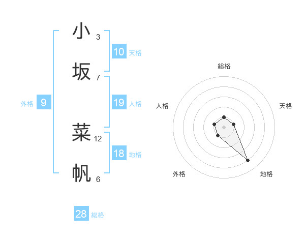 小坂 菜帆さんの総格は28画の1点!