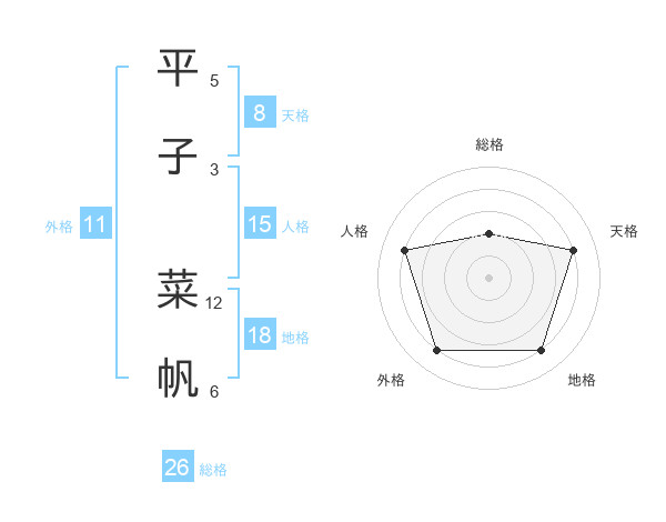 平子 菜帆さんの総格は26画の2点!
