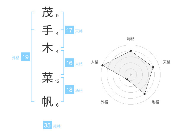 茂手木 菜帆さんを姓名の画数から五運を鑑定