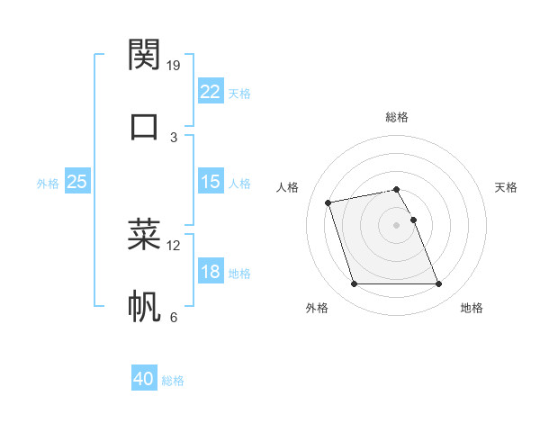 関口 菜帆さんの天格は22画の1点!
