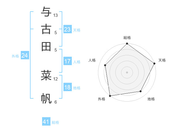 与古田 菜帆さんを姓名の画数から五運を鑑定