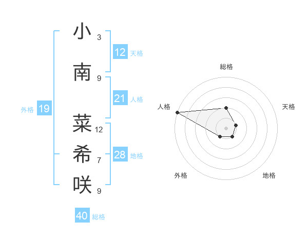 小南 菜希咲さんを姓名の画数から五運を鑑定