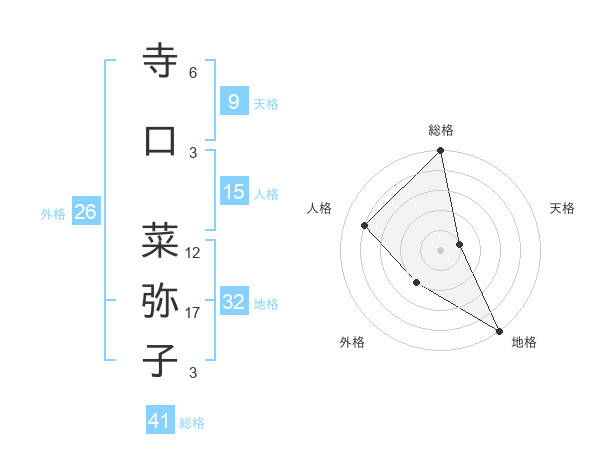 寺口 菜弥子さんを姓名の画数から五運を鑑定