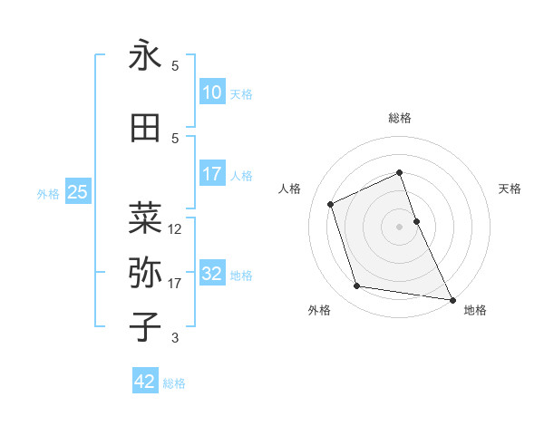 永田 菜弥子さんを姓名の画数から五運を鑑定