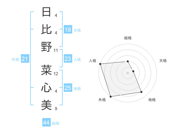 日比野 菜心美さんを姓名の画数から五運を鑑定